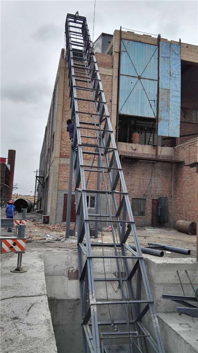 料車在爐頂可自動卸料、自動返退。在斜橋頂端,主軌兩側(cè)設(shè)有輔助導(dǎo)軌。當(dāng)料車進(jìn)入卸料導(dǎo)軌時,前車輪將繼續(xù)沿主軌前進(jìn),而具有雙踏面的后車輪則沿主軌外側(cè)的輔助導(dǎo)軌上升,使料車自動傾翻把料卸入爐頂受料漏斗。當(dāng)料車卸完料后,卷揚機反向旋轉(zhuǎn),空料車則由自重而從卸料導(dǎo)軌自行返退下來。